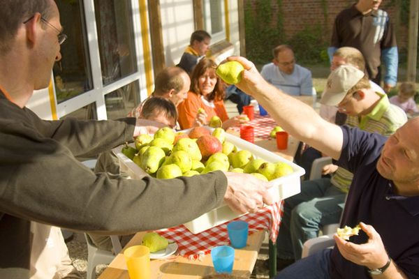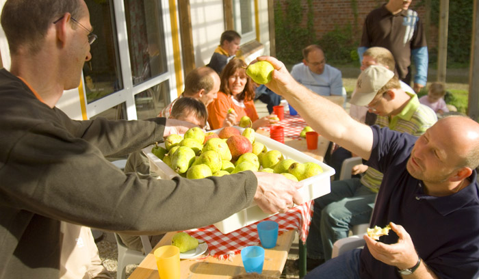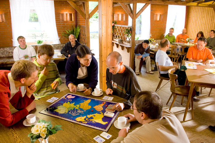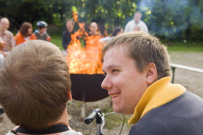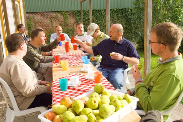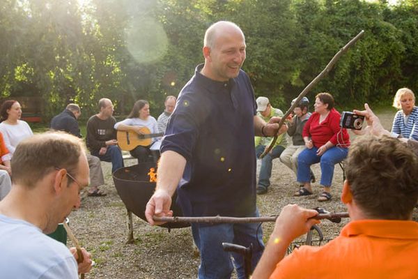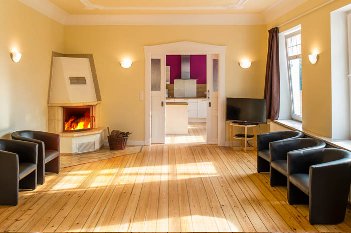 Gäste im Aufenthaltsraum der alten Scheune