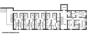 10 rollstuhlgerechte Doppelzimmer mit eigener Dusche/WC, ein rollstuhlgerechtes Einzelzimmer mit eigener Dusche/WC.